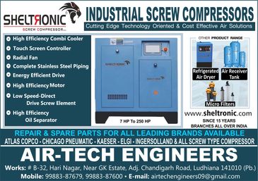 Suppliers of SHELTRONIC brand of Industrial Screw Compressors, Refrigerated Air Dryers, Air Receiver Tank & Micro Filters